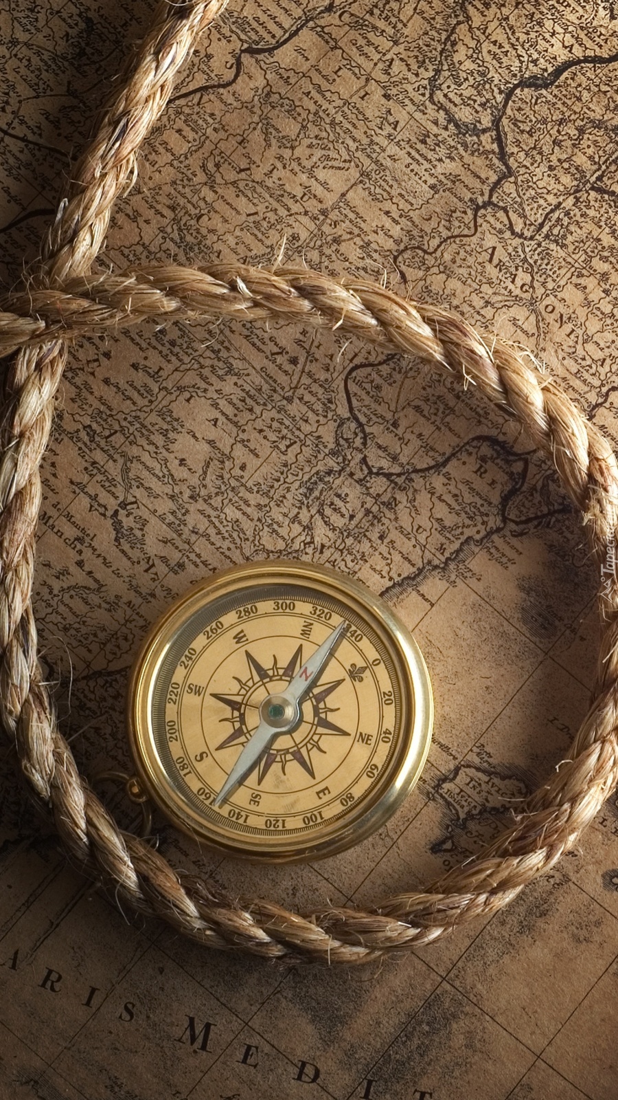 Edytor tapety: Kompas i sznur na starej mapie