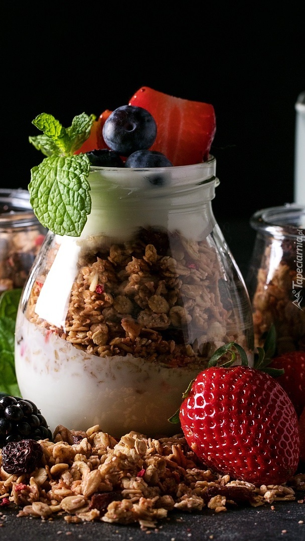 Edytor tapety: Słoiczek z jogurtem i płatkami śniadaniowymi