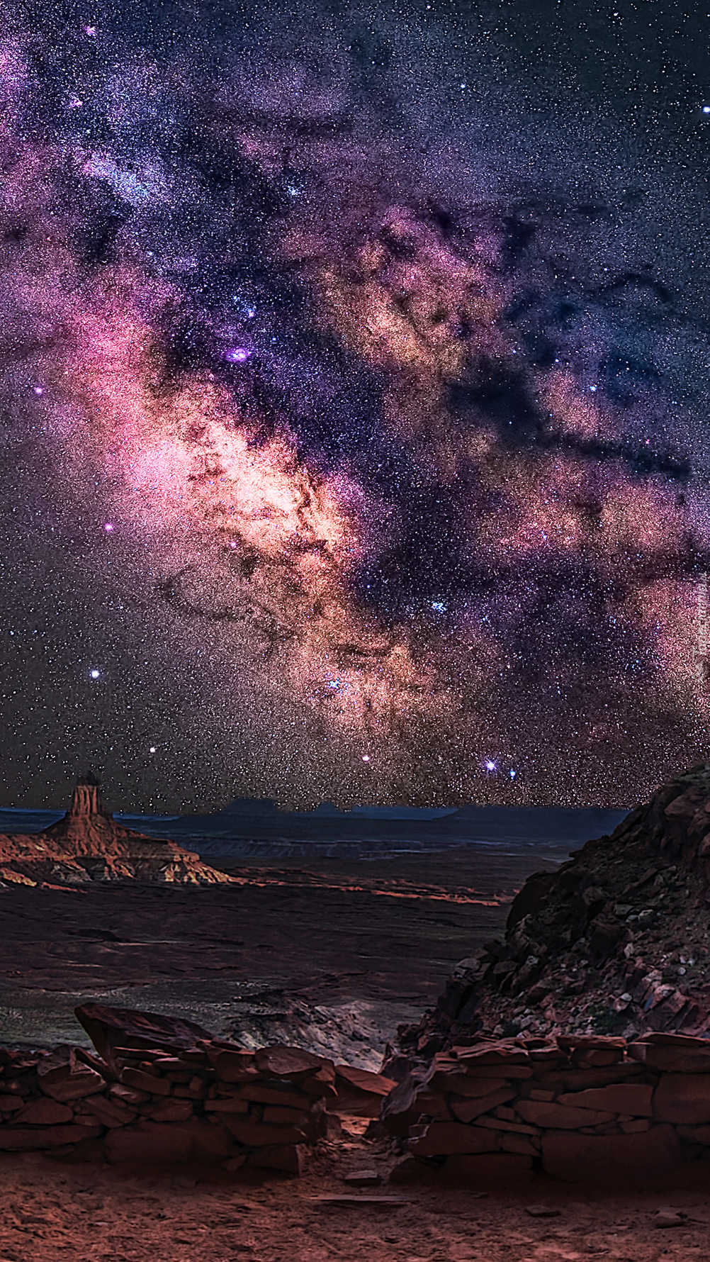 Edytor tapety: Gwiaździste niebo nad grotą skalną