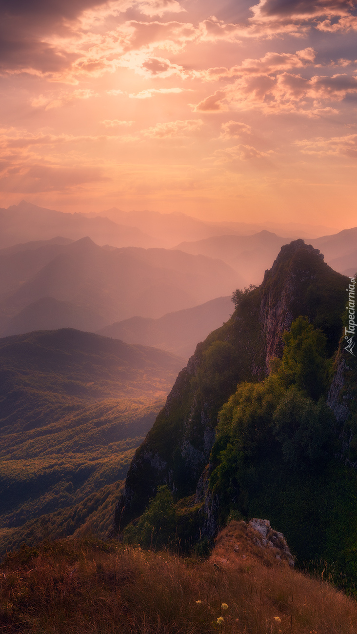 Edytor tapety: Wschód słońca nad górą