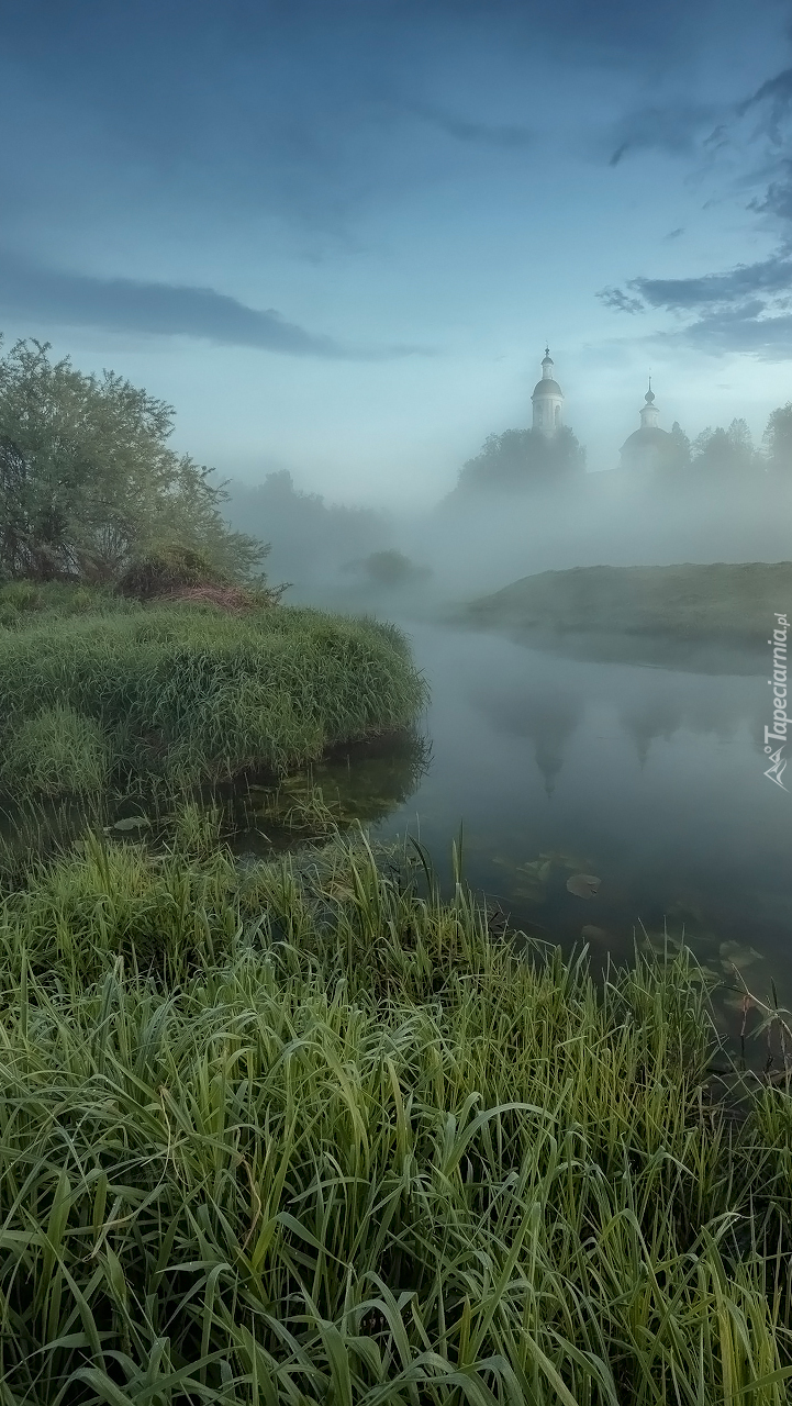 Edytor tapety: Cerkiew we mgle nad rzeką