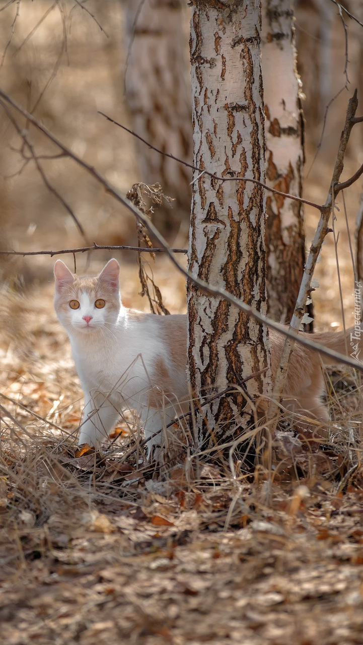 Edytor tapety: Kotek przy brzozie