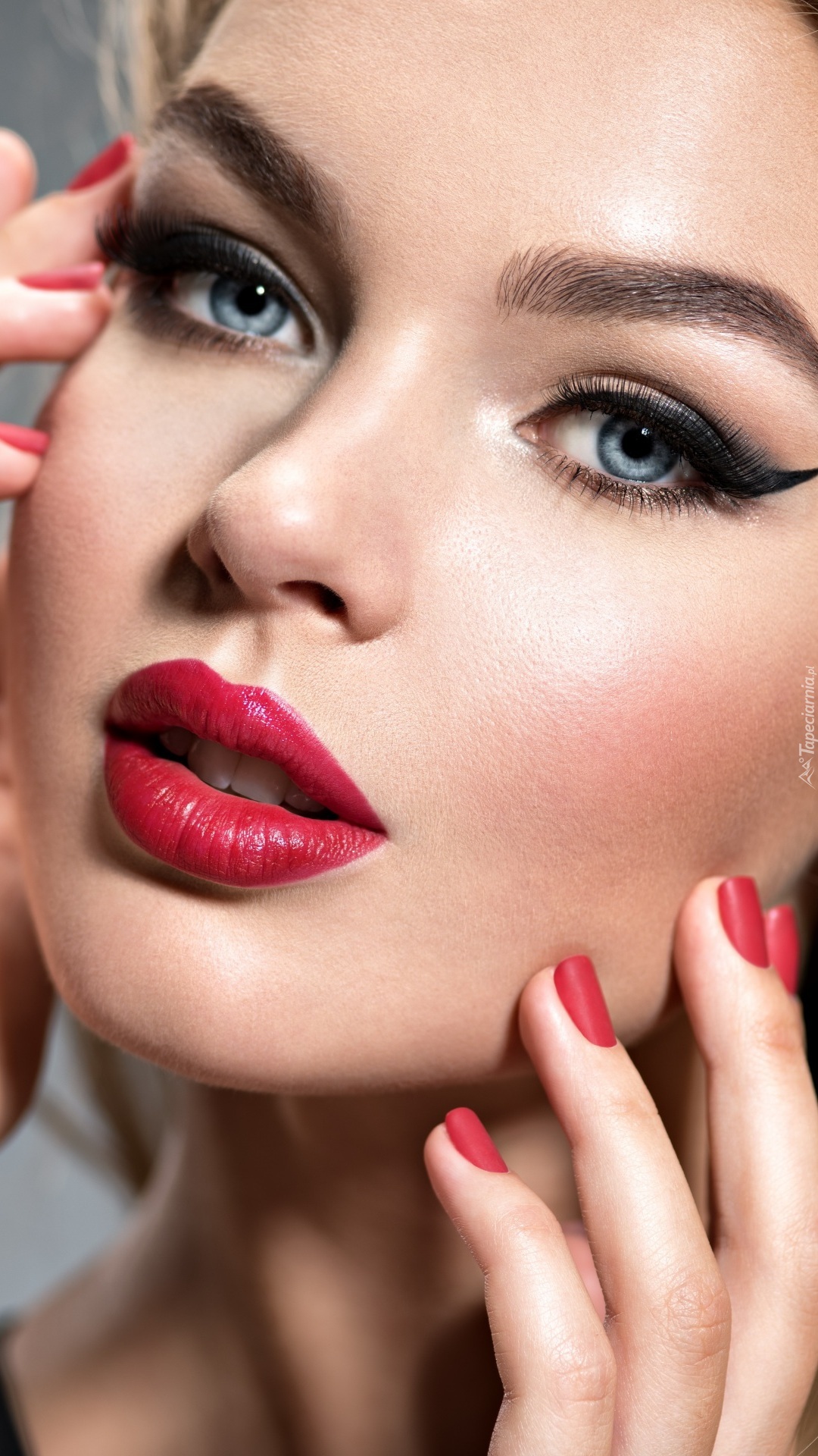 Edytor tapety: Niebieskooka kobieta w makijażu
