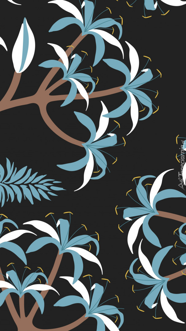 Edytor tapety: Niebiesko-białe kwiaty i liście