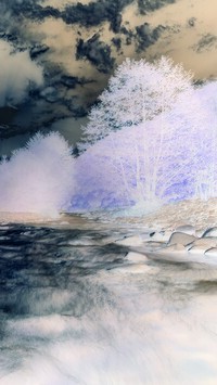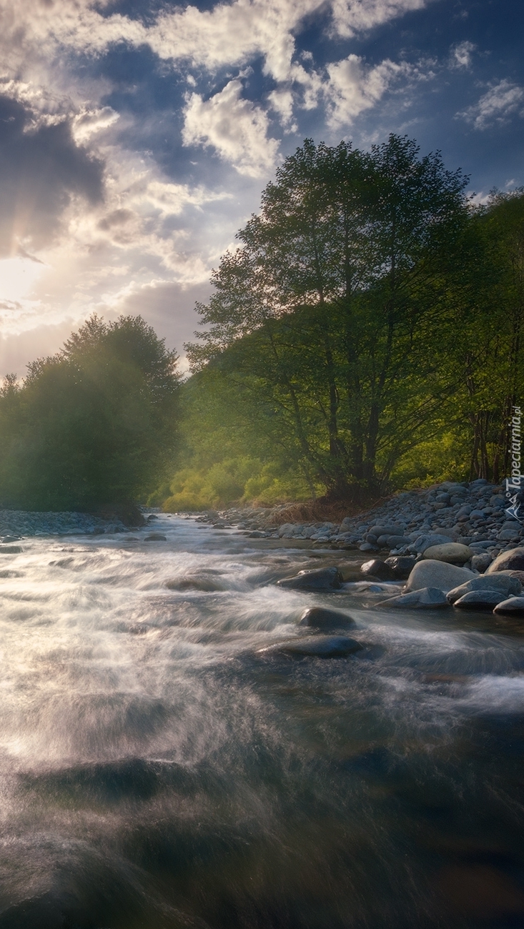 Edytor tapety: Drzewa na brzegu kamienistej rzeki