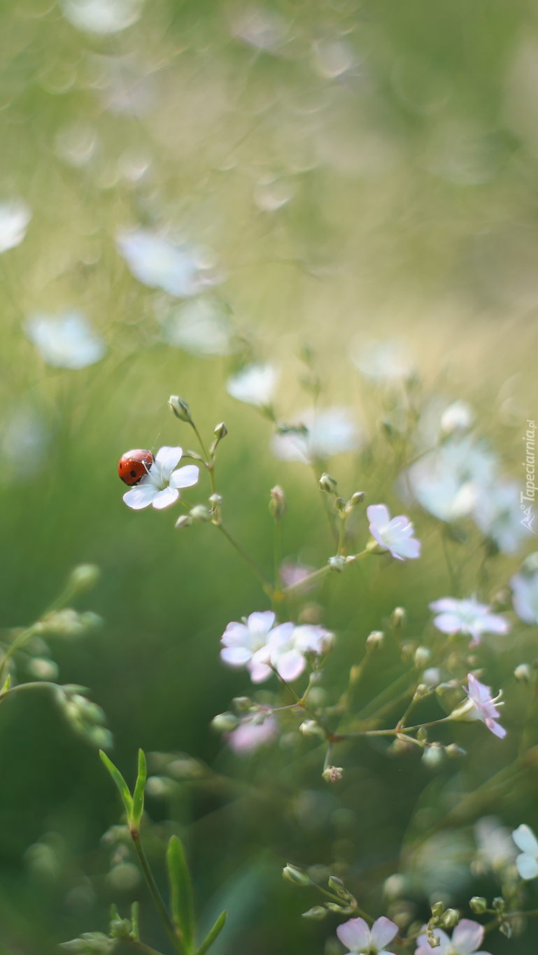 Edytor tapety: Biedronka na białym kwiatku