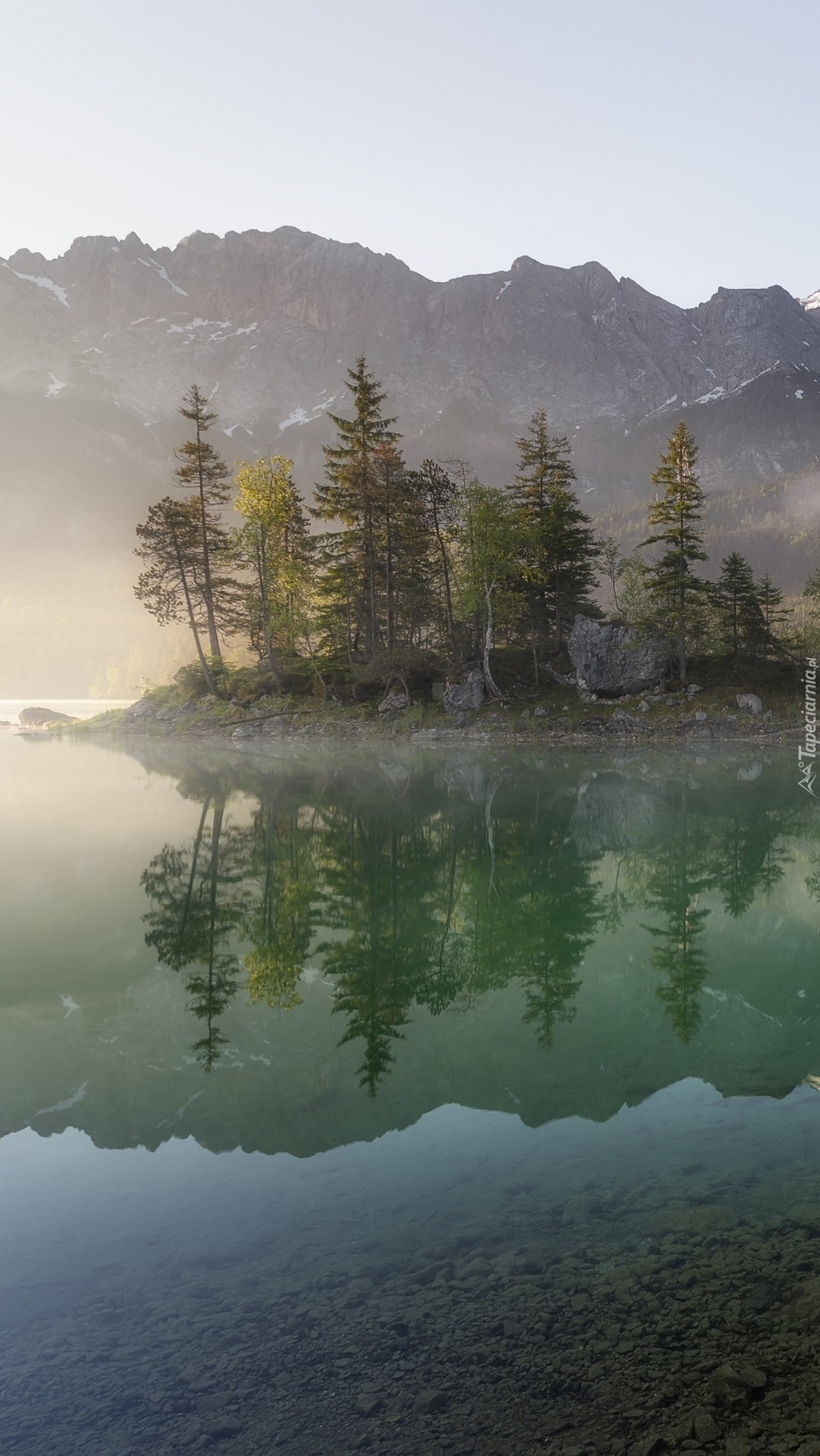 Edytor tapety: Drzewa nad jeziorem Eibsee
