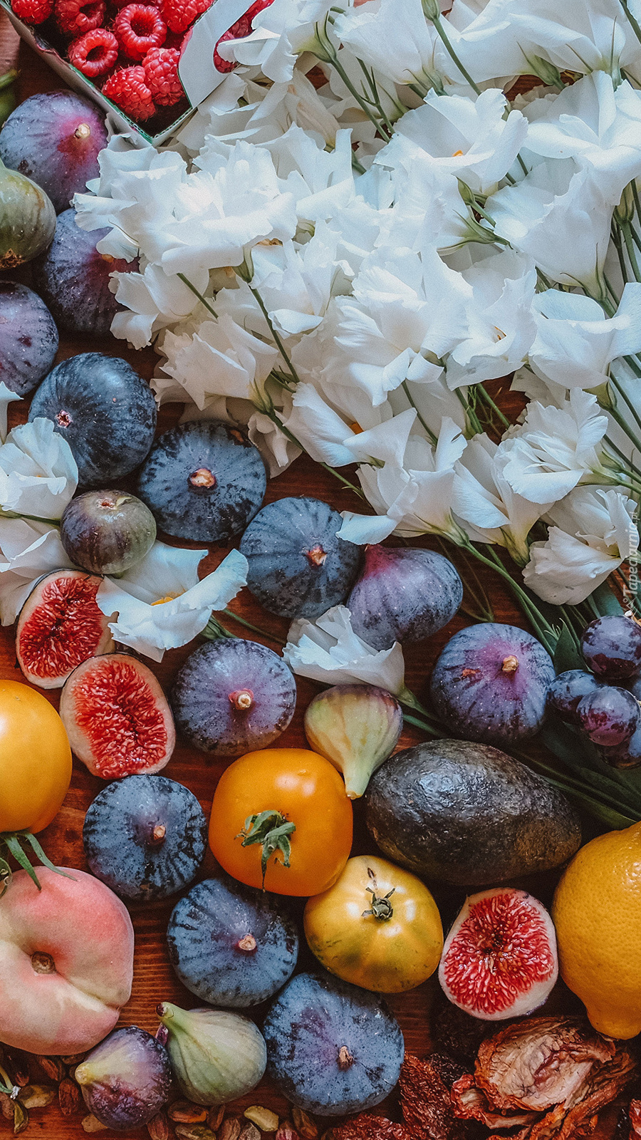 Edytor tapety: Białe kwiaty na owocach