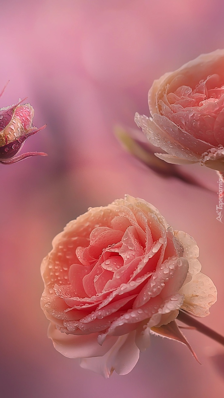 Edytor tapety: Krople wody na różach