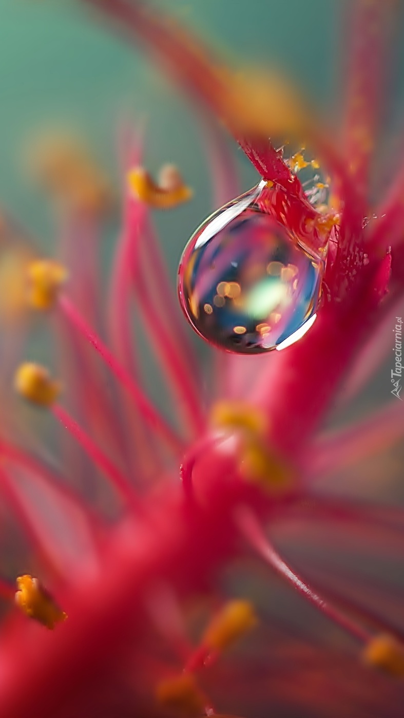 Edytor tapety: Kropla na czerwonej roślinie