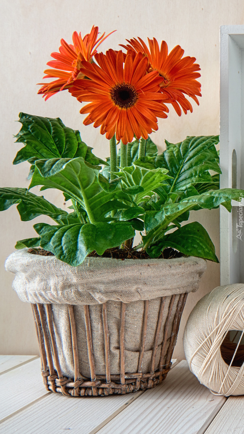 Edytor tapety: Gerbery w wiklinowym koszyku