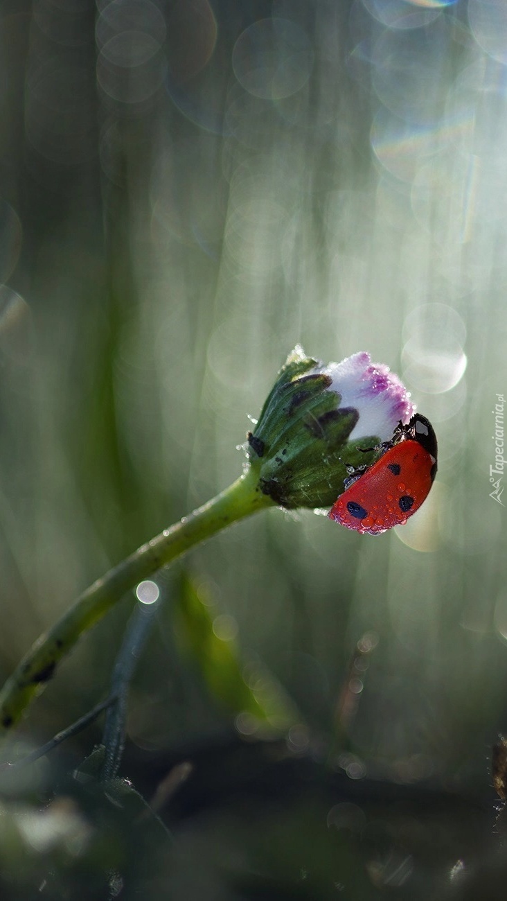 Edytor tapety: Biedronka na pąku stokrotki