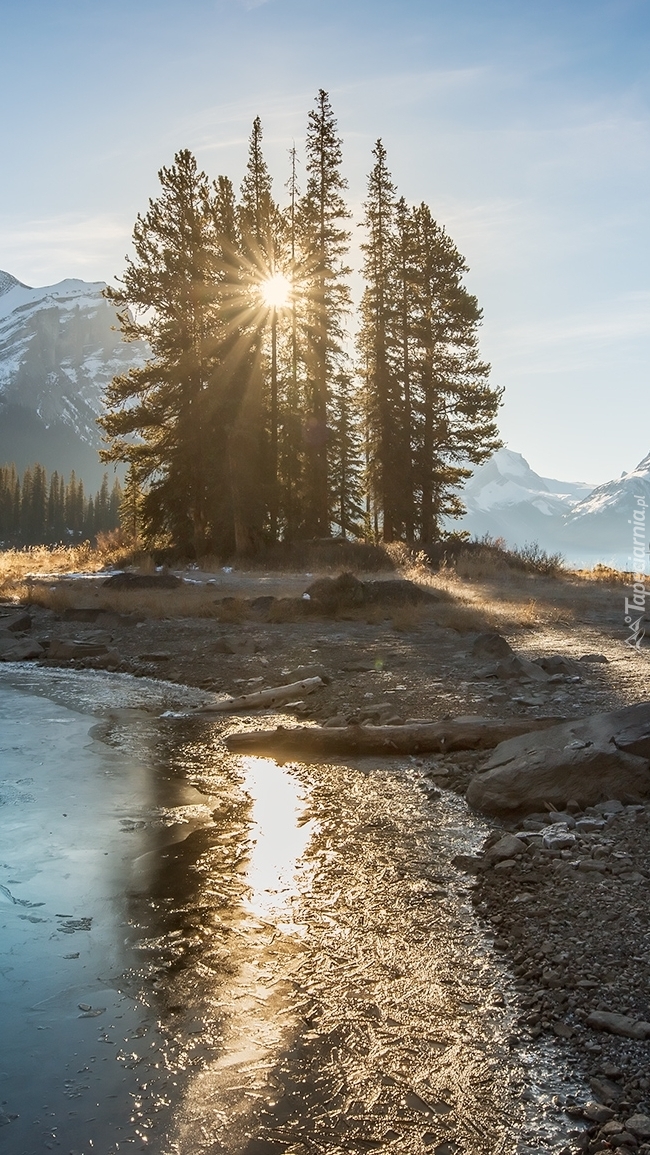 Edytor tapety: Drzewa nad jeziorem Maligne