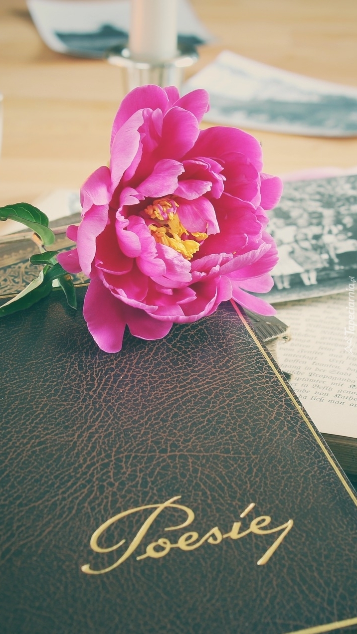 Edytor tapety: Piwonia na tomiku poezji