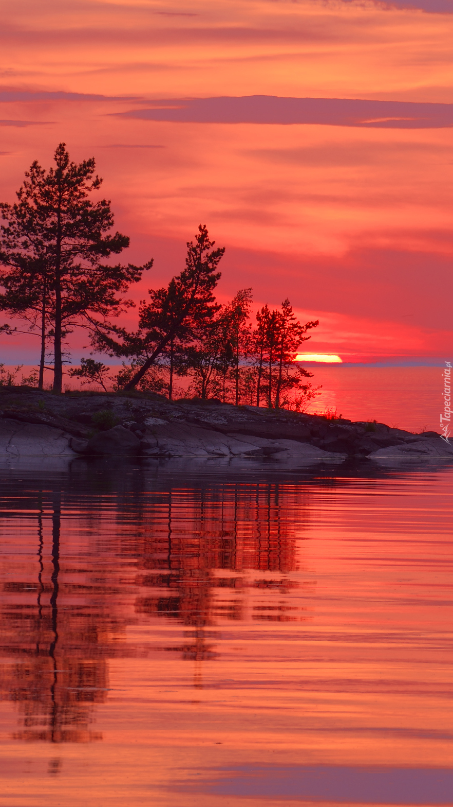 Edytor tapety: Jezioro Ładoga pod czerwonym niebem