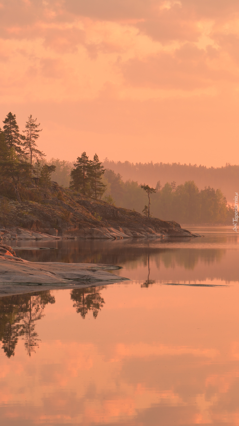 Edytor tapety: Jezioro Ładoga ze skałami i drzewami