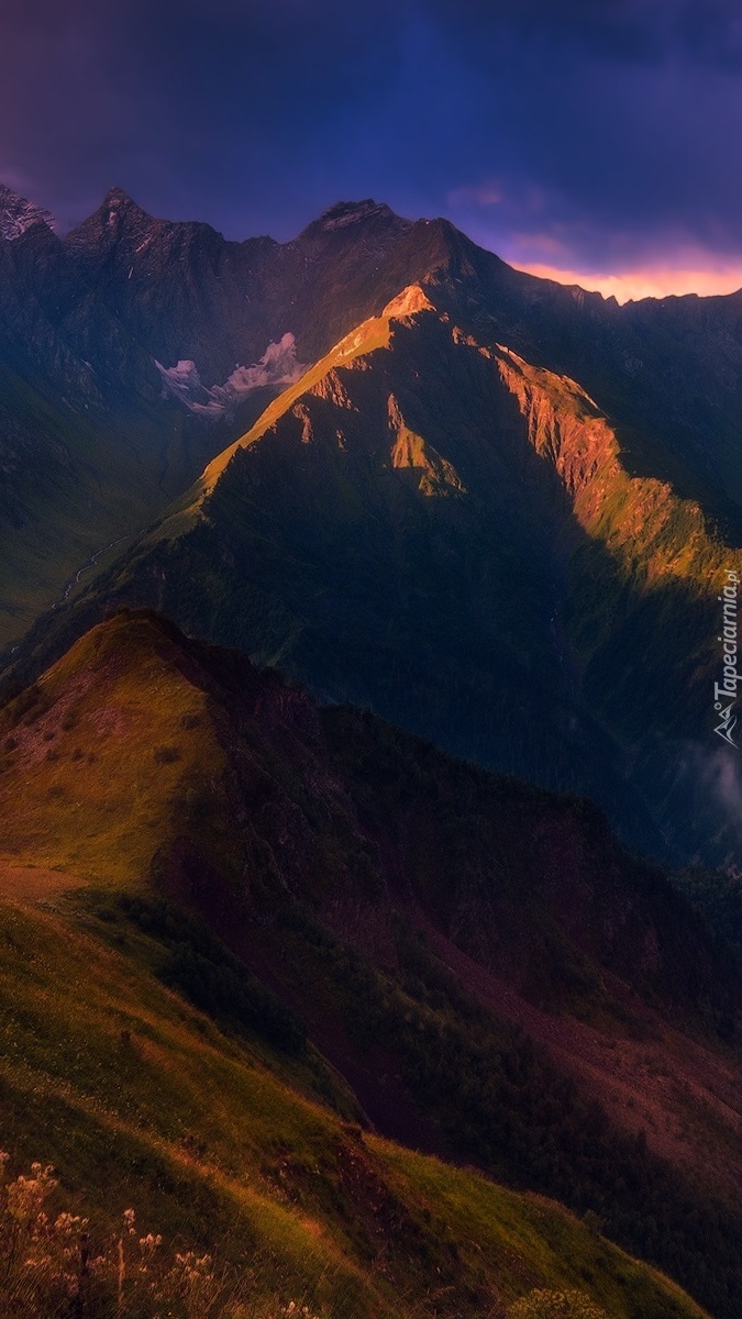 Edytor tapety: Rozświetlone słońcem szczyty gór