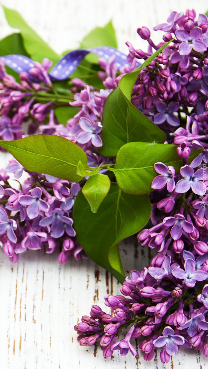 Edytor tapety: Fioletowy lilak z listkami