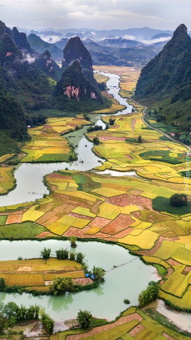 Edytor tapety: Kręta rzeka i pola w Wietnamie