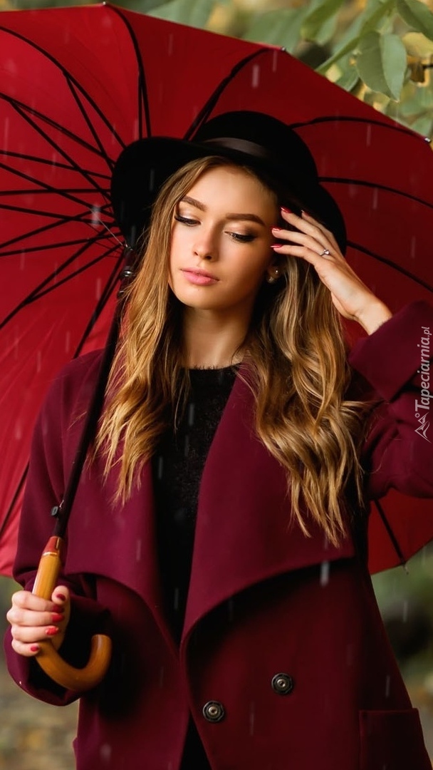 Edytor tapety: Kobieta w kapeluszu z parasolką