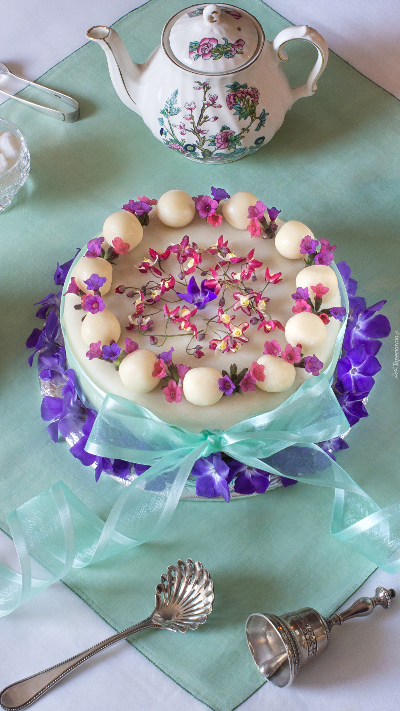Edytor tapety: Ciasto i czajniczek z herbatą