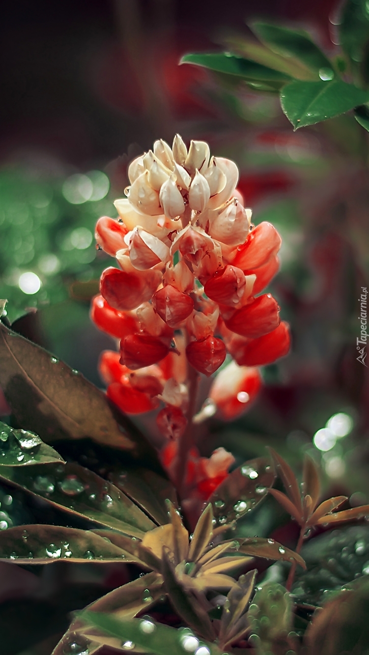Edytor tapety: Czerwony łubin w kroplach