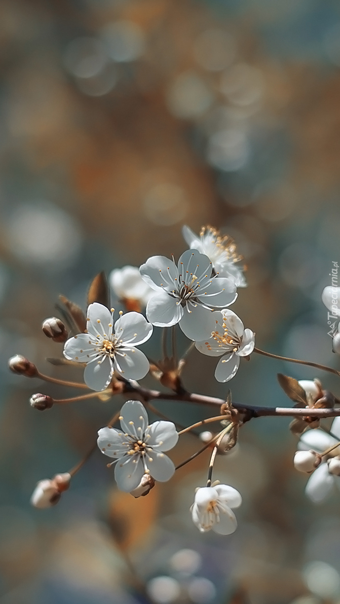 Edytor tapety: Gałązka białych kwiatów wiśni