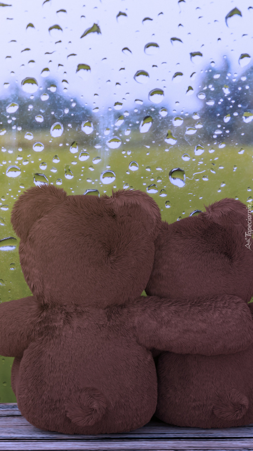 Edytor tapety: Przytulone misie przy mokrej szybie