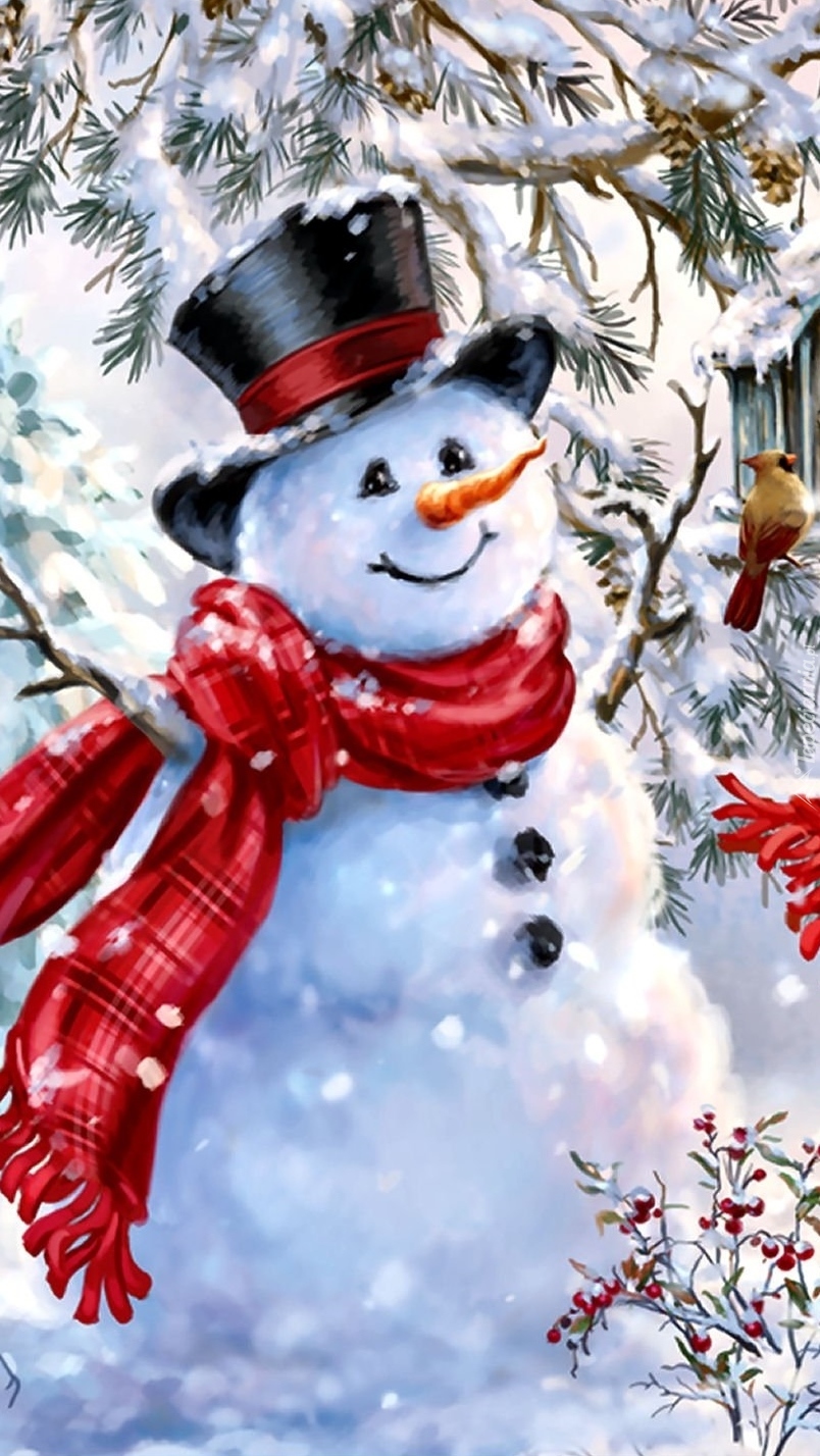 Edytor tapety: Bałwanek pod świerkiem
