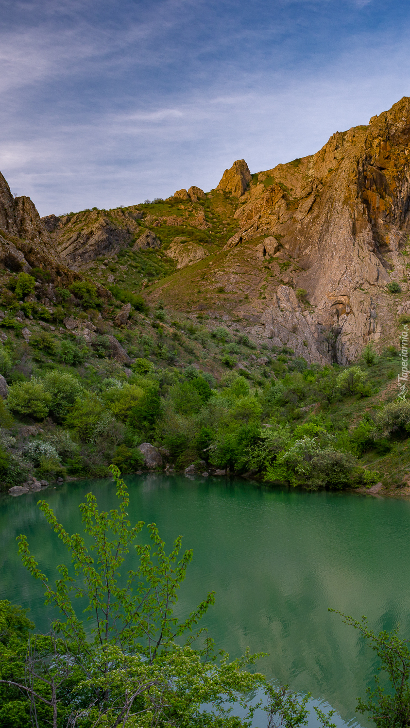 Edytor tapety: Krzewy i drzewa wokół jeziora