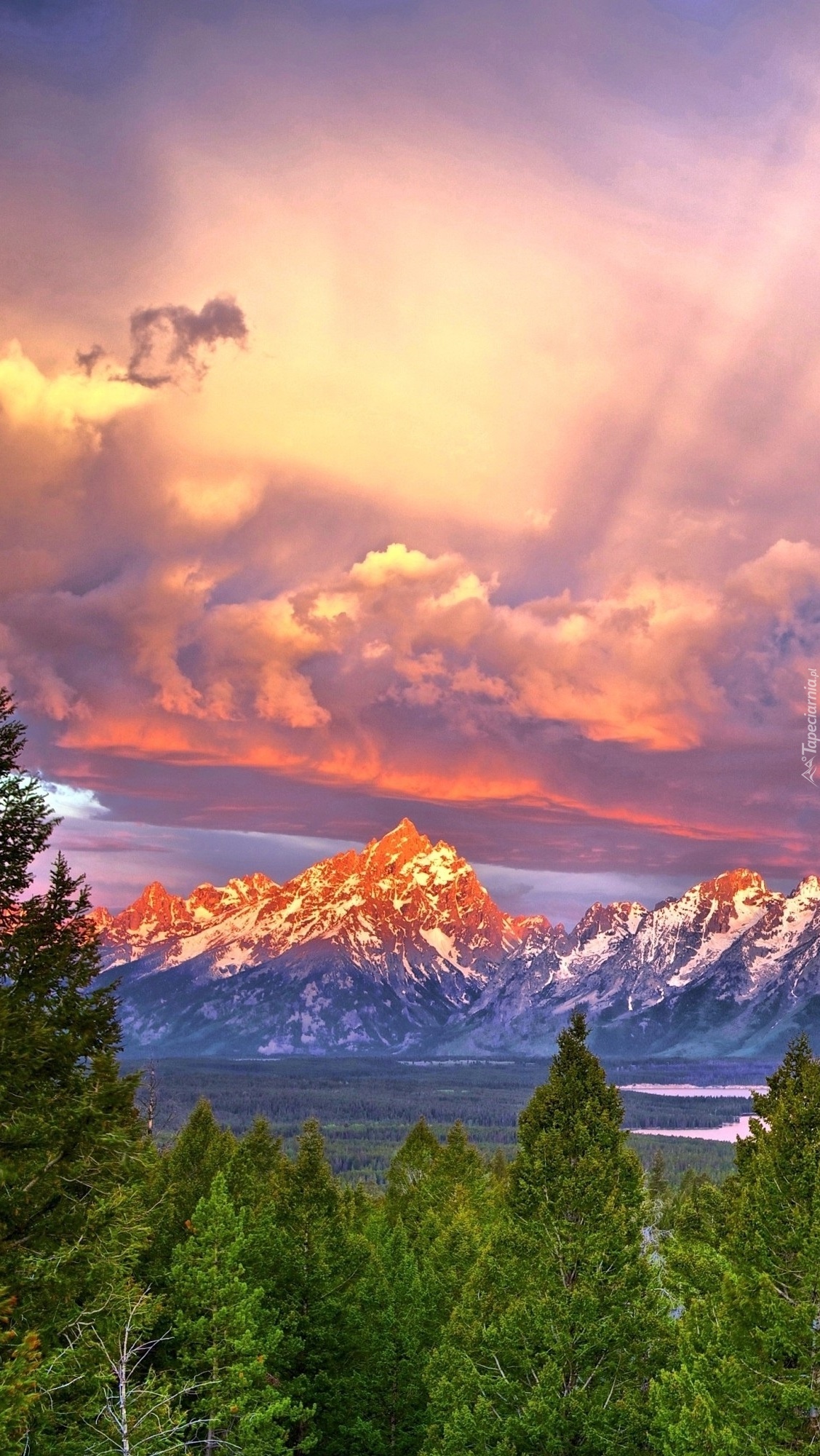 Edytor tapety: Malowniczy zachód słońca nad górami