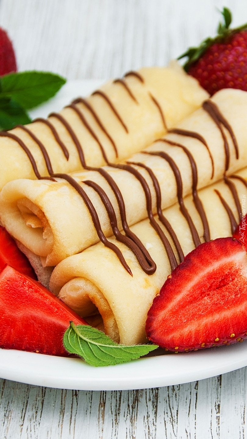 Edytor tapety: Talerz z naleśnikami i truskawkami