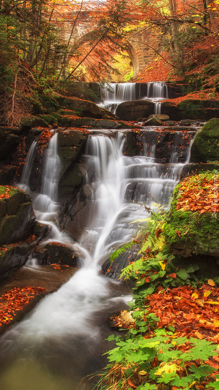 Edytor tapety: Opadłe liście nad wodospadem
