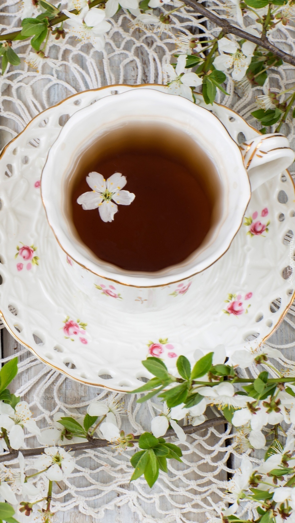 Edytor tapety: Filiżanka z herbatą na koronkowej serwecie