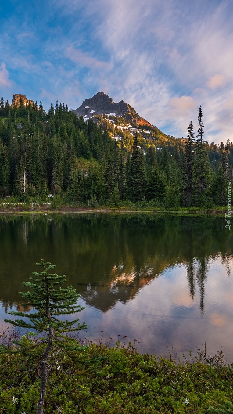 Edytor tapety: Góry i las nad jeziorem