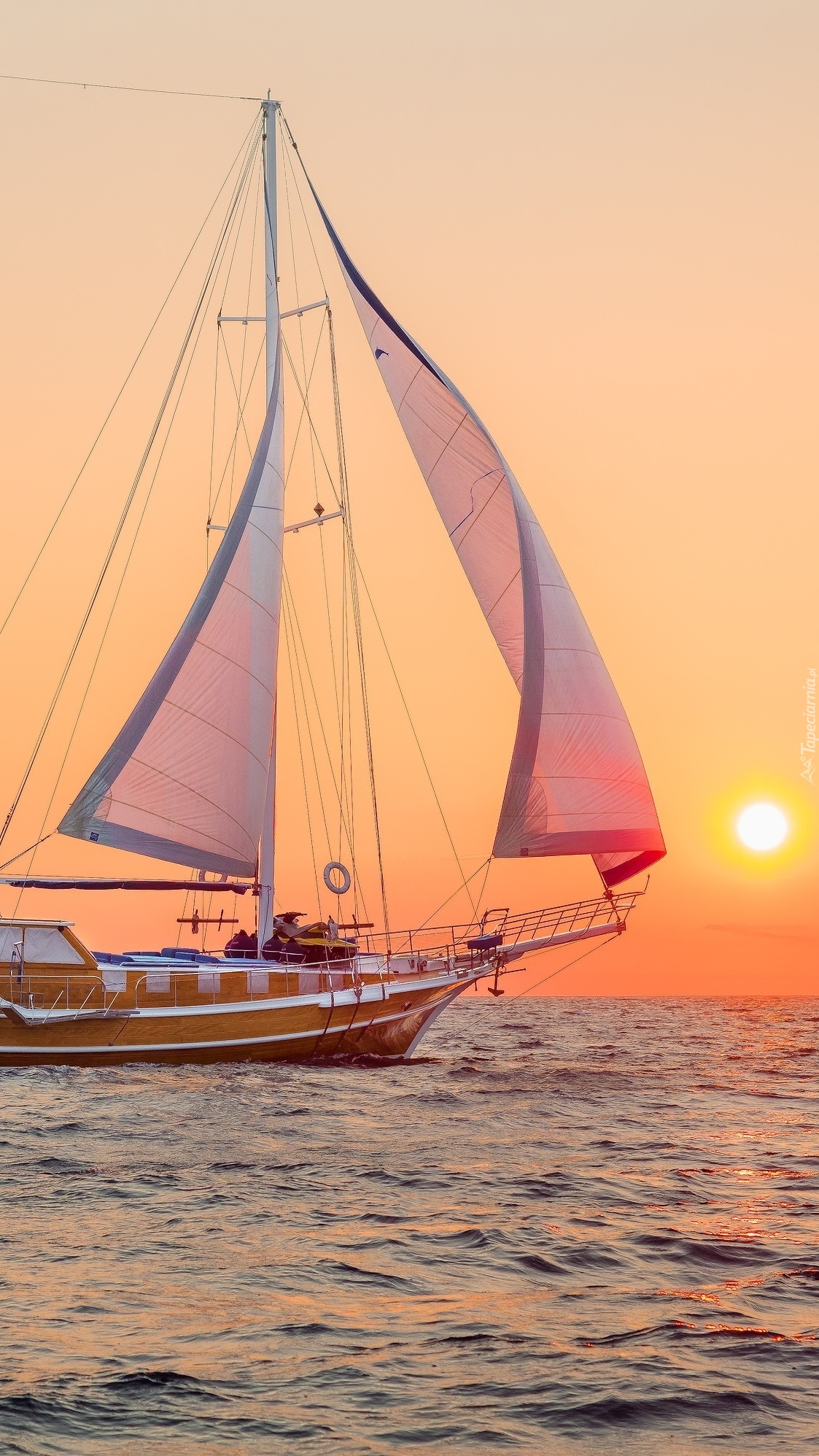 Edytor tapety: Żaglówka na morzu o wschodzie słońca