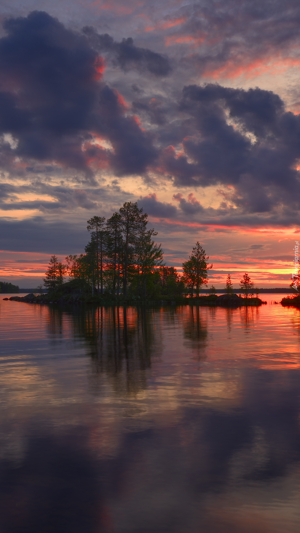 Edytor tapety: Wysepka z drzewami na środku jeziora