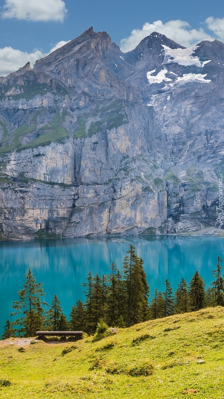 Edytor tapety: Ławka nad jeziorem Oeschinen