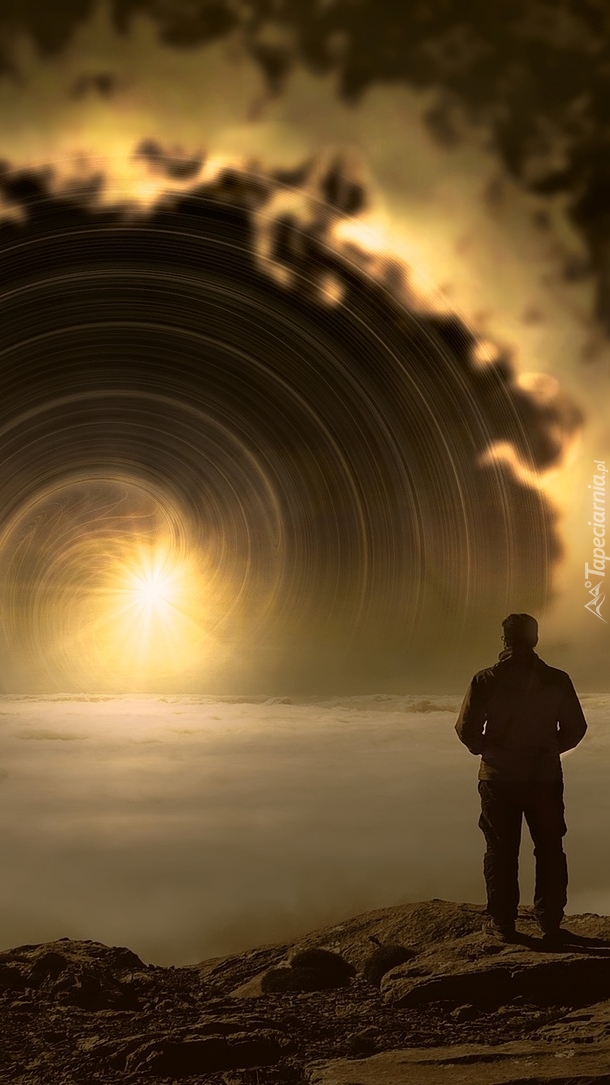 Edytor tapety: Mężczyzna spoglądający w tunel świetlny