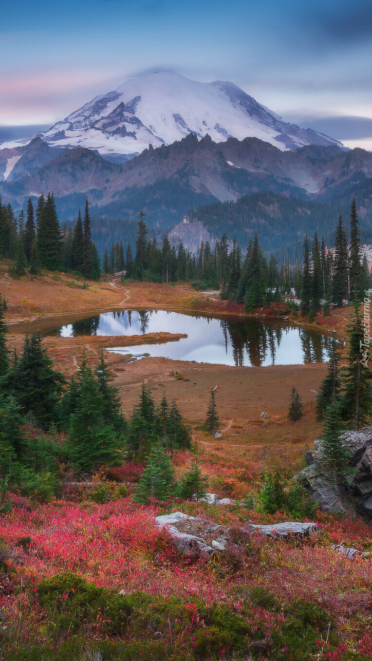 Edytor tapety: Stratowulkan Mount Rainier i jezioro Tipsoo