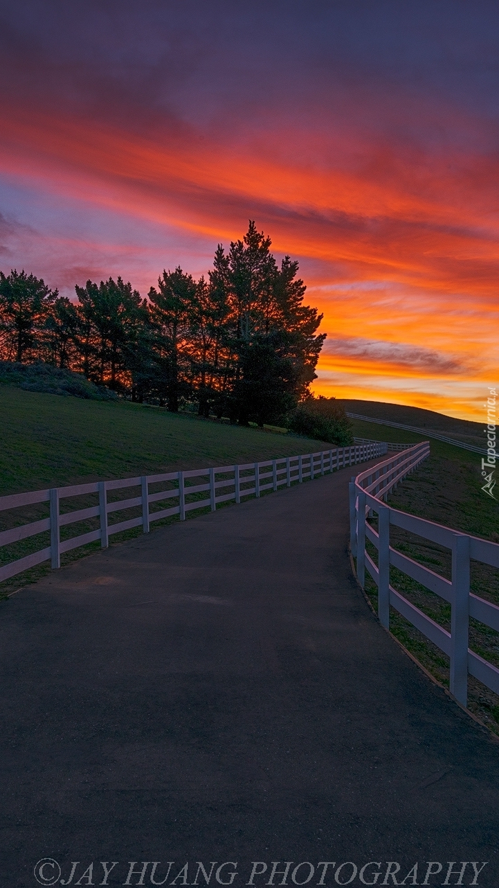 Edytor tapety: Drzewa obok ogrodzenia przy drodze