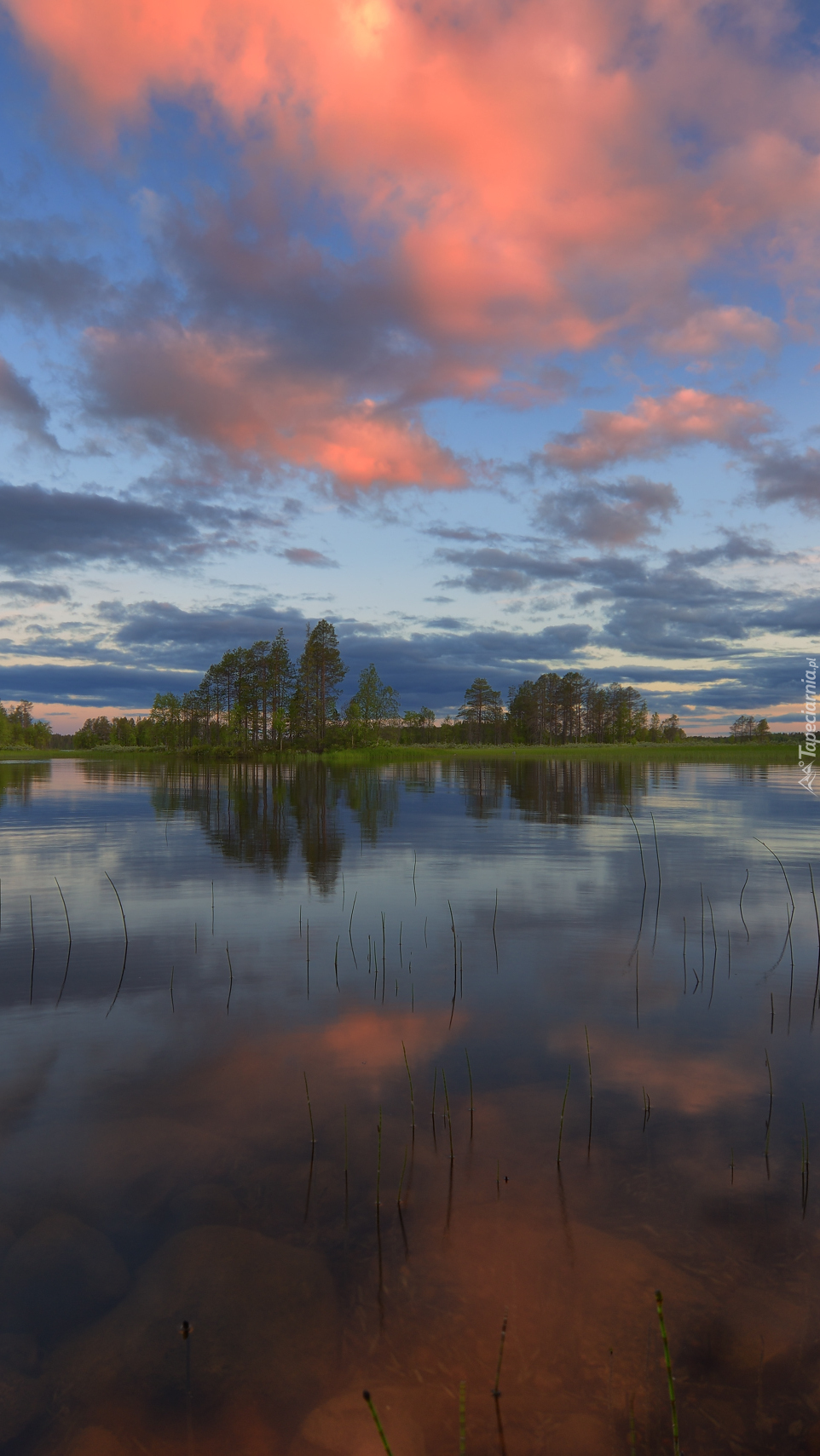 Edytor tapety: Chmury i drzewa nad jeziorem