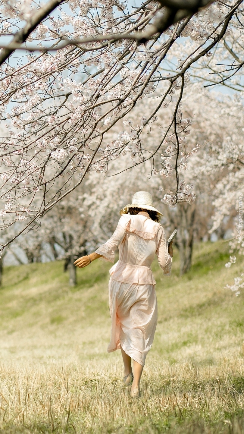 Edytor tapety: Kobieta pod kwitnącym drzewem