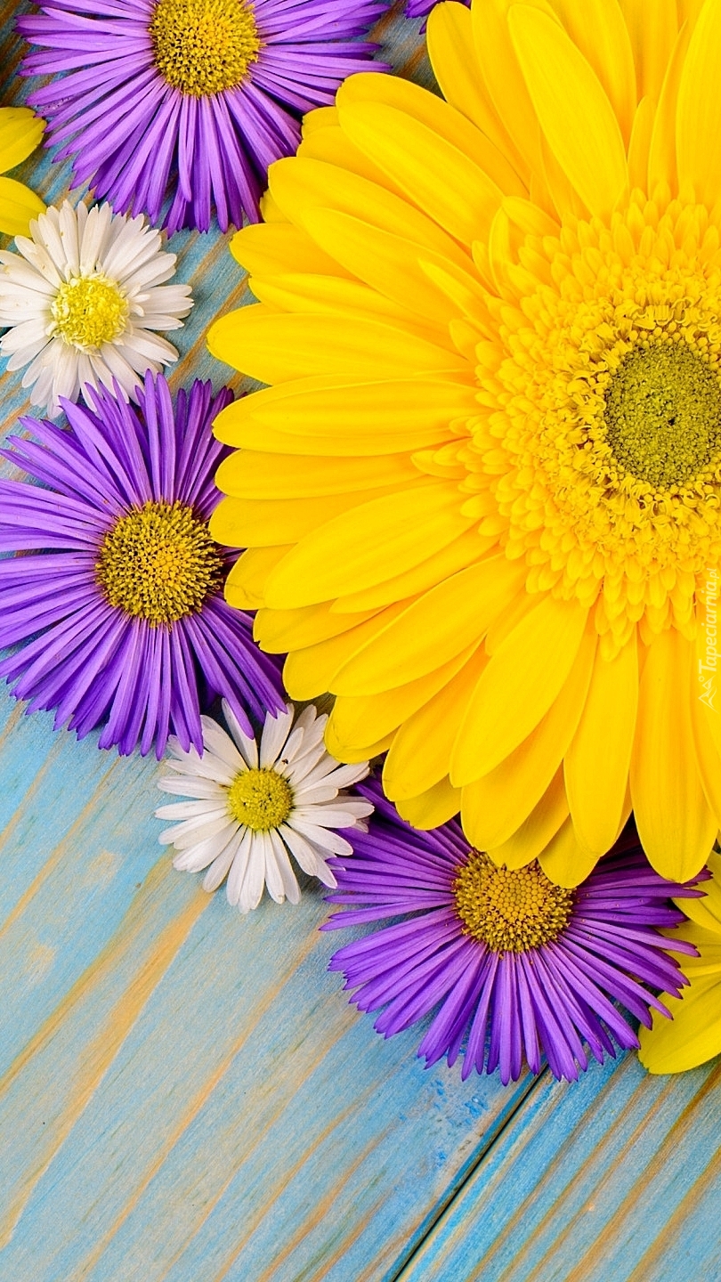 Edytor tapety: Stokrotki i astry obok gerbery