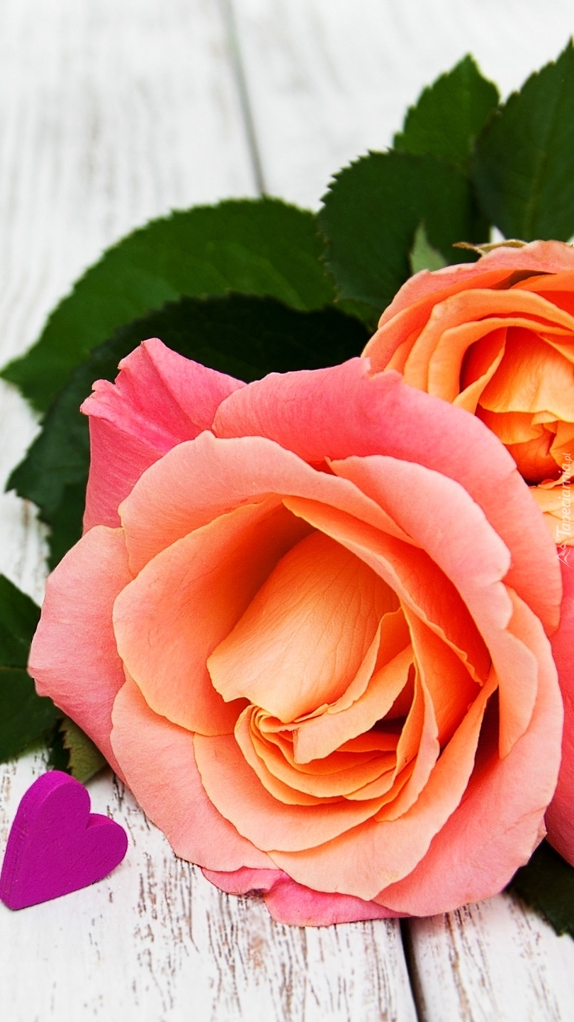 Edytor tapety: Serduszko obok róży na desce
