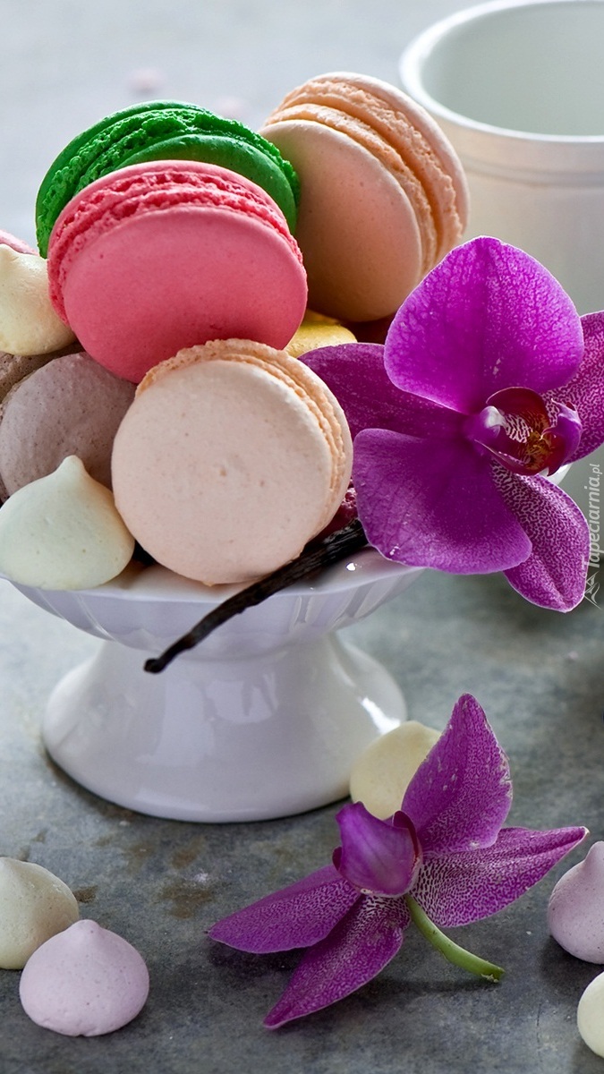 Edytor tapety: Storczyk przy makaronikach na paterze