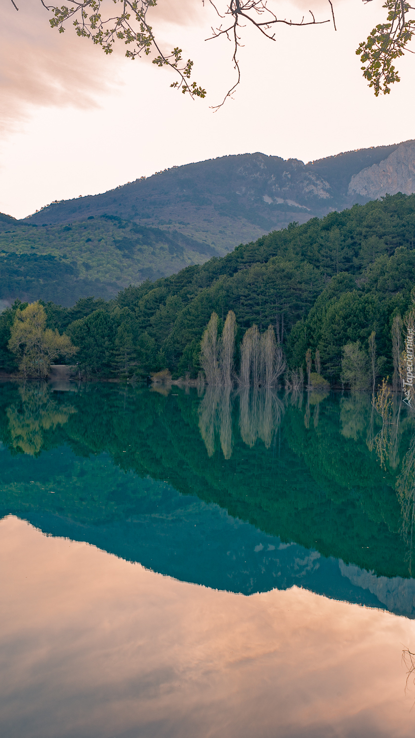Edytor tapety: Zalesione wzgórze nad jeziorem