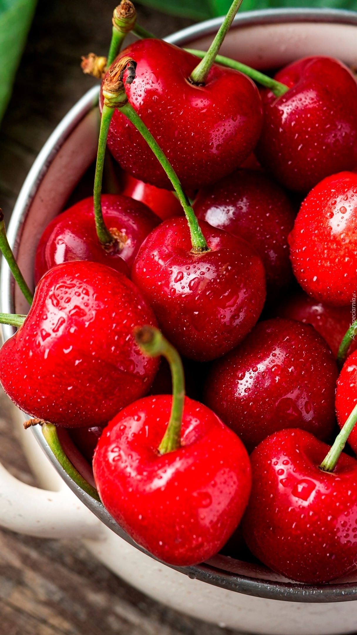 Edytor tapety: Garnek z umytymi wiśniami