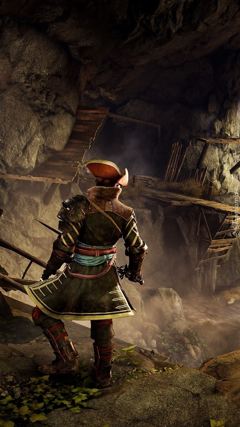 Edytor tapety: Bohater z gry GreedFall w jaskini