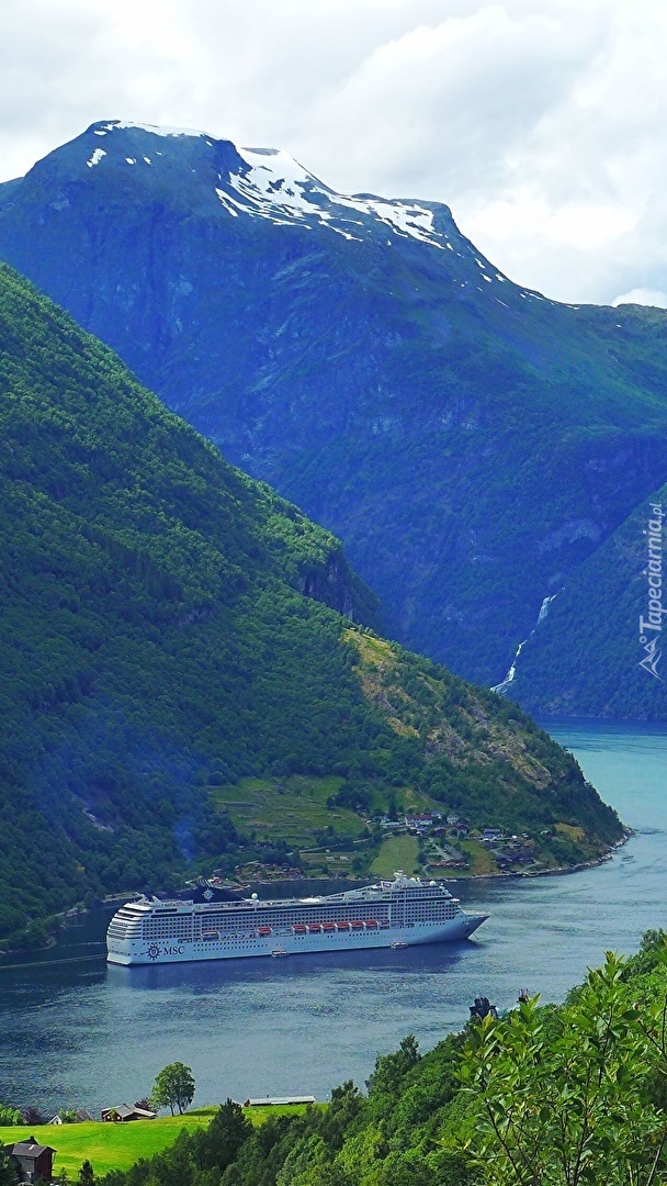 Edytor tapety: Statek pasażerski na fiordzie Geirangerfjorden